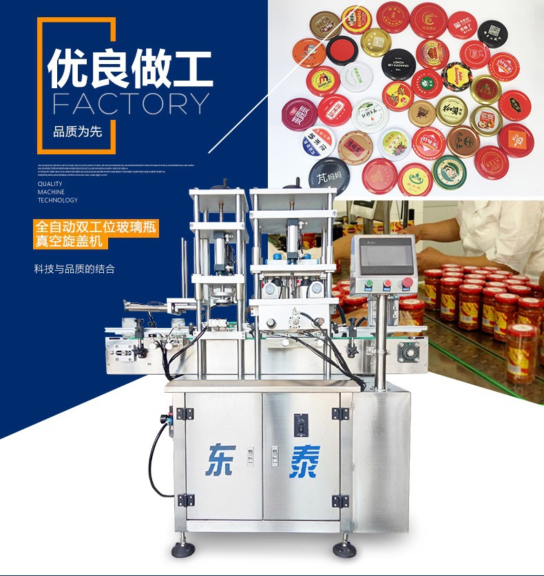 該機(jī)借鑒國外技術(shù),結(jié)合國內(nèi)客戶需求研發(fā)而成。該機(jī)集自動進(jìn)瓶、自動理蓋上蓋、自動抽真空旋蓋、自動出瓶于一體,生產(chǎn)效率高,運(yùn)行穩(wěn)定可靠,是食品醬料、飲料、保健品等行業(yè)馬口鐵三(四)旋蓋理想的抽真空旋蓋設(shè)備。