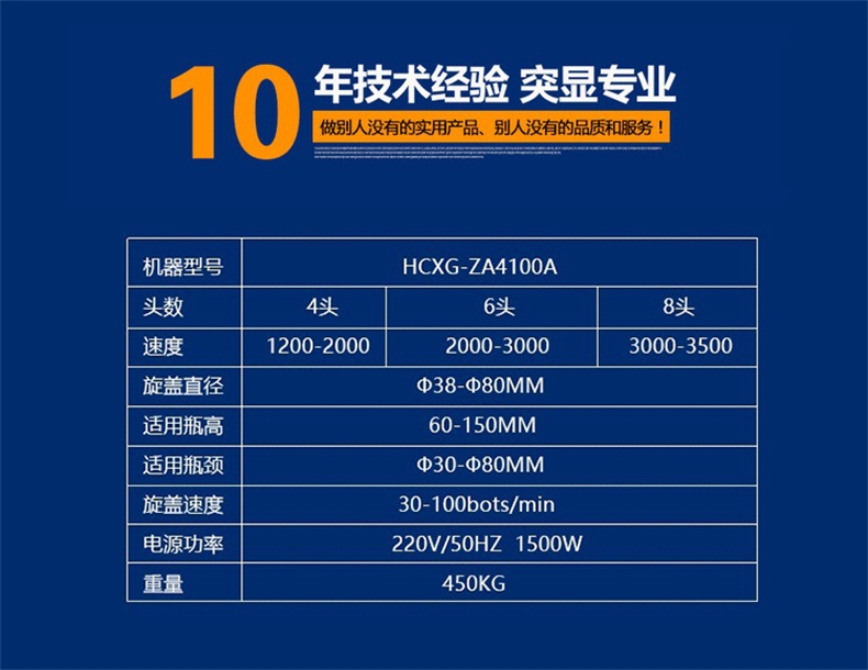 6.旋蓋機(jī)構(gòu)高度可快速調(diào)節(jié),可適用相同口徑、不同高度的瓶子旋蓋;更換部分零件即可實現(xiàn)不同瓶徑、不同口徑的旋蓋,更換快捷方便。