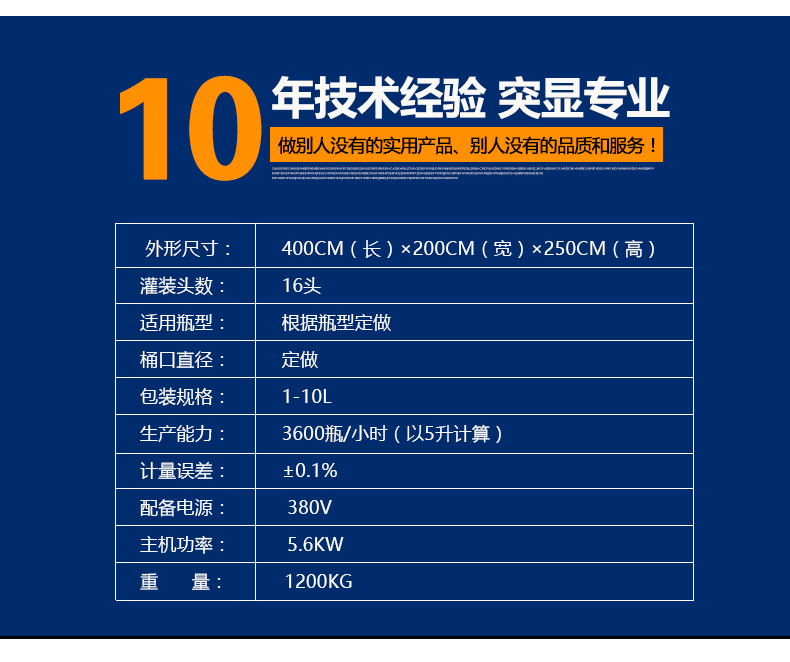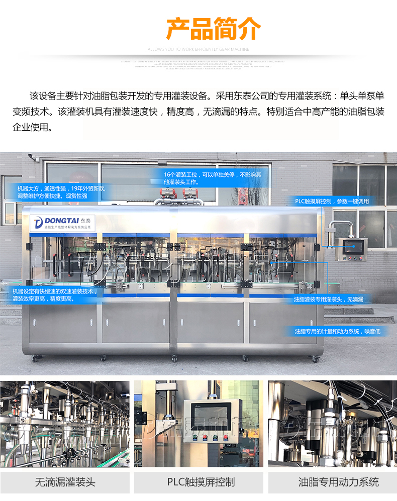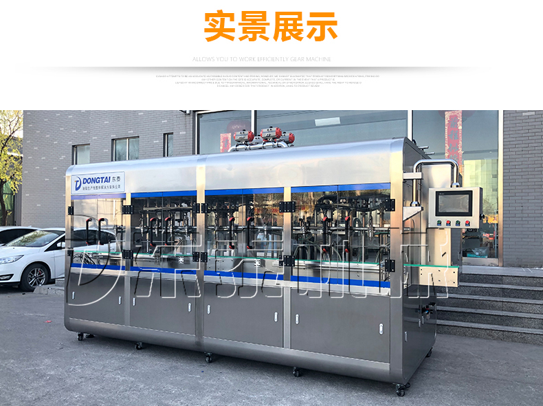 該大型潤(rùn)滑油灌裝機(jī)采用容積式計(jì)量灌裝原理,適用于各種規(guī)格(1-5L)的液體肥等液體灌裝。設(shè)備采用伺服驅(qū)動(dòng)活塞計(jì)量,保證了 1‰的灌裝,在保證灌裝的同時(shí),提高了 20%-35%的灌裝速度,操作簡(jiǎn)單,維護(hù)方便,節(jié)省人工成本,生產(chǎn)效率更高。